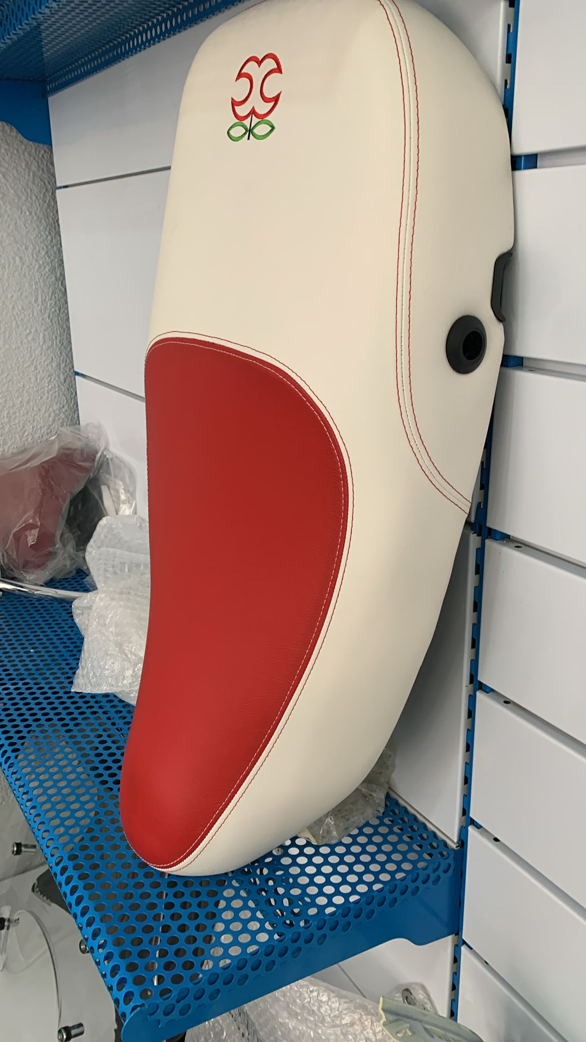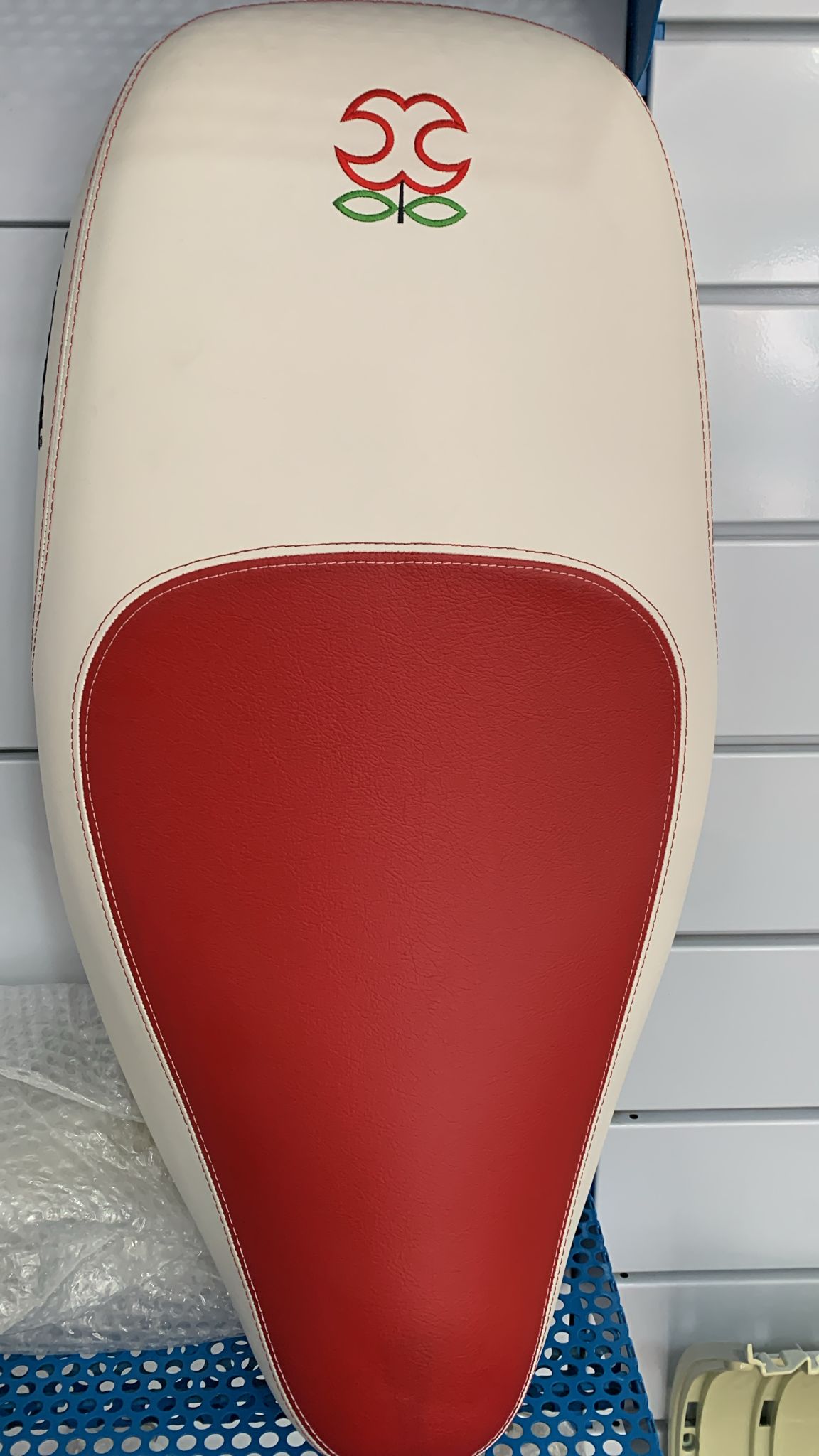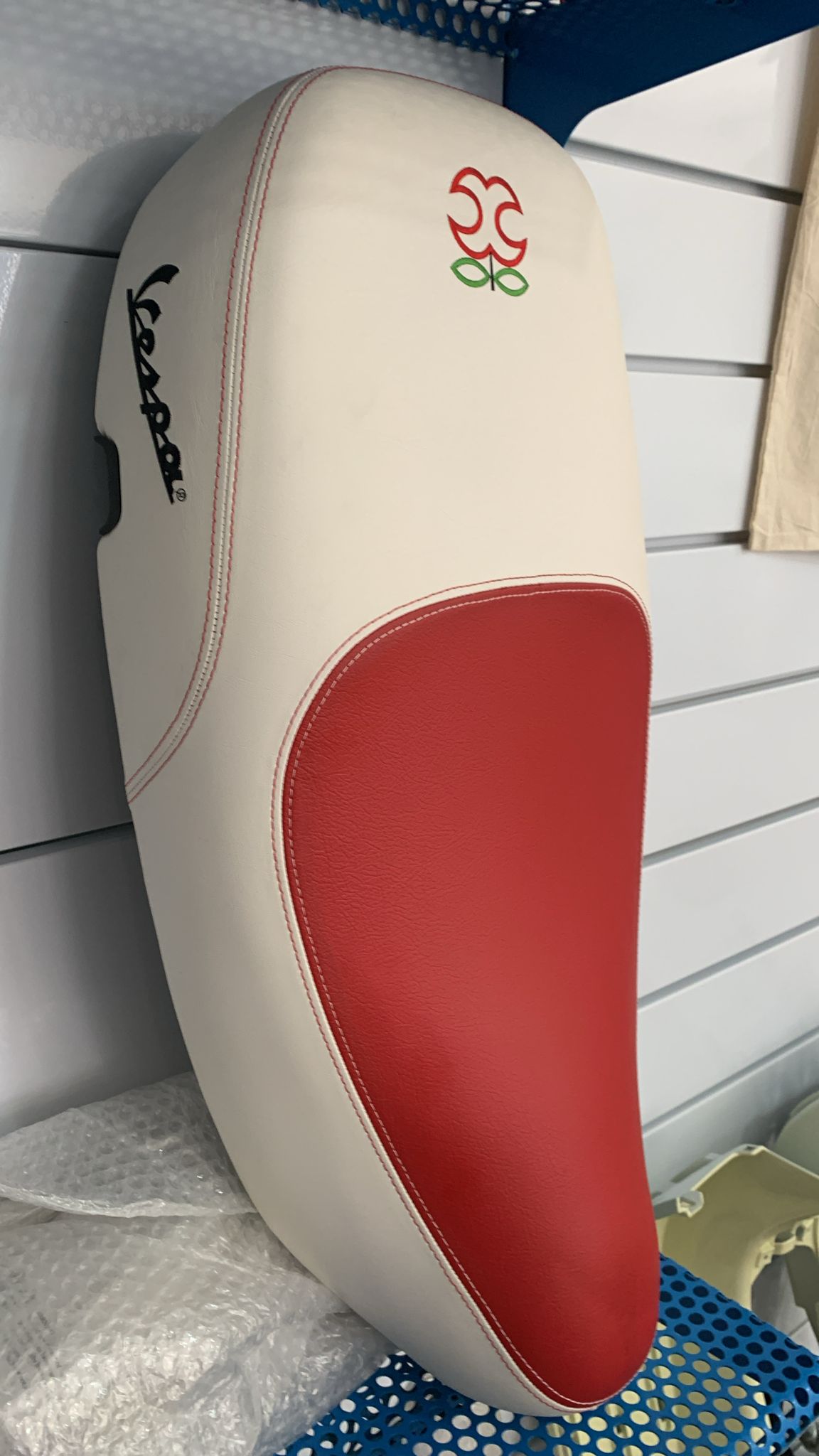 ASIENTO VESPA LX 50/125 VESPA ET2 ET4 APPLE ROJO/BLANCO COSIDO LATERAL VESPA